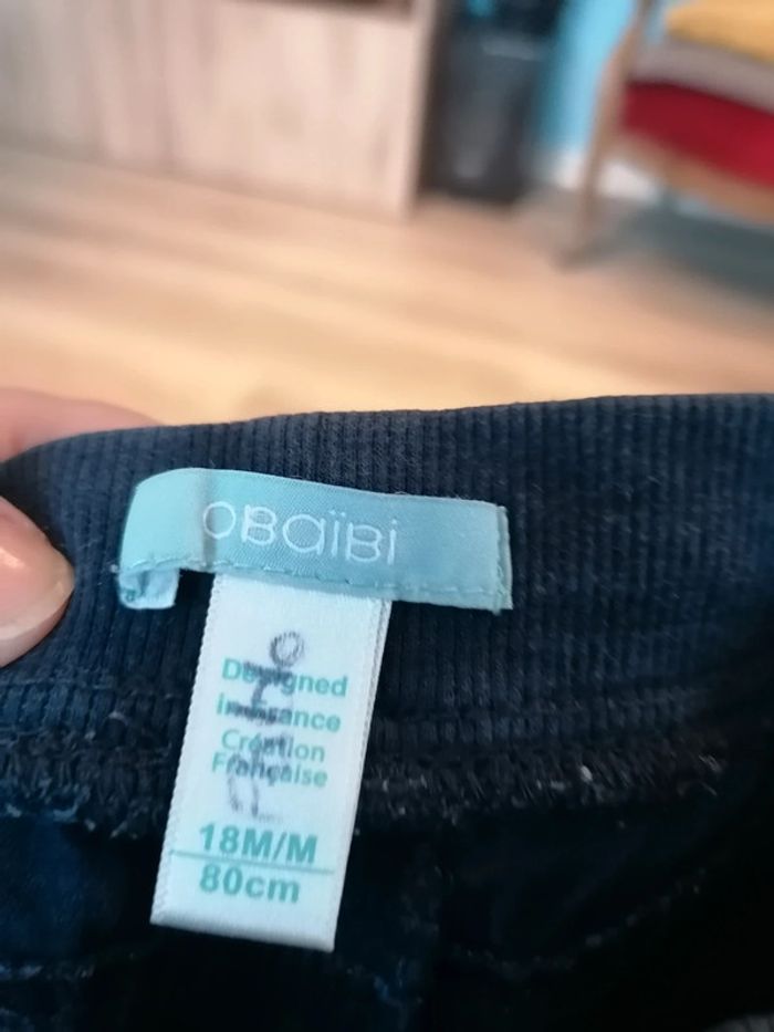 Bonjour, je vends ce pantalon marine de la marque Obaïbi taille 18mois en bon état. Lavé maison non fumeur.