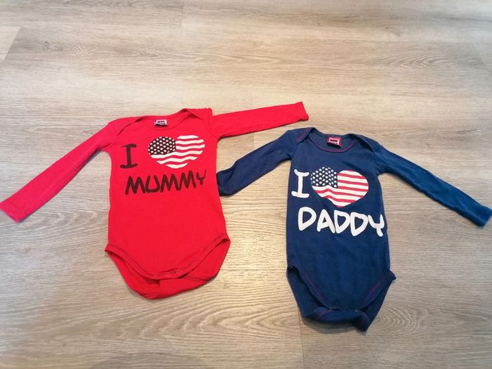 Bonjour, je vends ce lot de 2 bodys de la marque Devil child taille 18mois en très bon état. Lavé maison non fumeur.