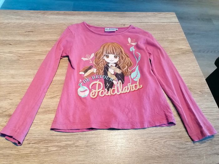 Bonjour, je vends ce tee shirt à manches longues rose motif Hermione de la marque Harry Potter taille 6ans en très bon état. Lavé maison non fumeur.