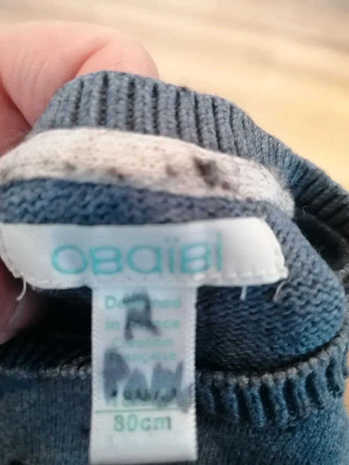 Bonjour, je vends ce pull bleu de la marque Obaïbi taille 18mois en bon état. Lavé maison non fumeur.