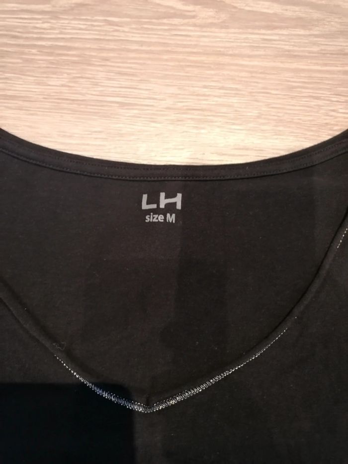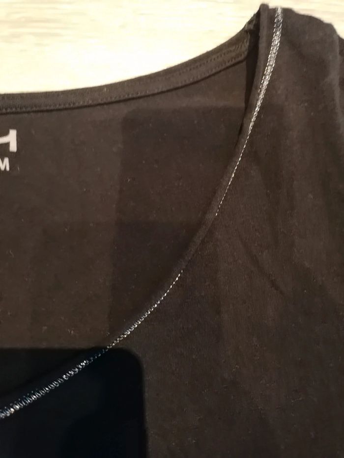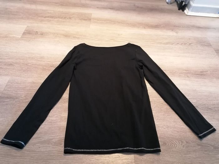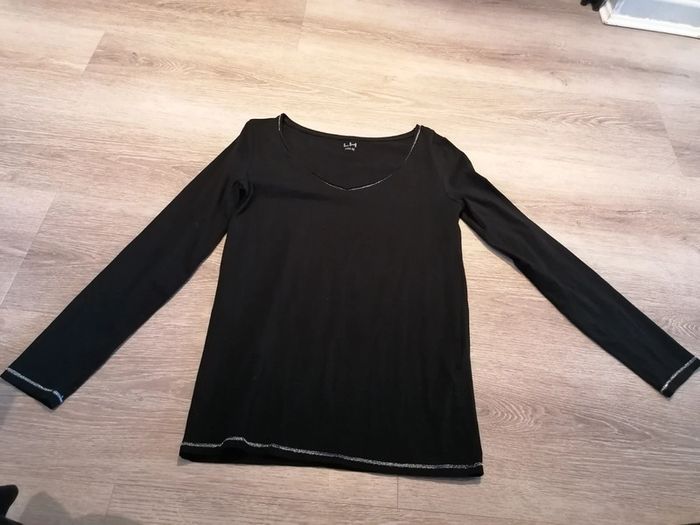 Bonjour, je vends ce tee shirt à manches longues noir avec liseré argenté de la marque La Halle taille M en très bon. Lavé maison non fumeur.
