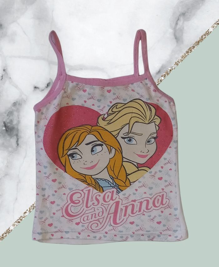 👋 N'hésitez pas à faire des lots, des réductions sont appliquées 👋 Débardeur Reine des Neiges. Taille 36 mois. Très bon état.