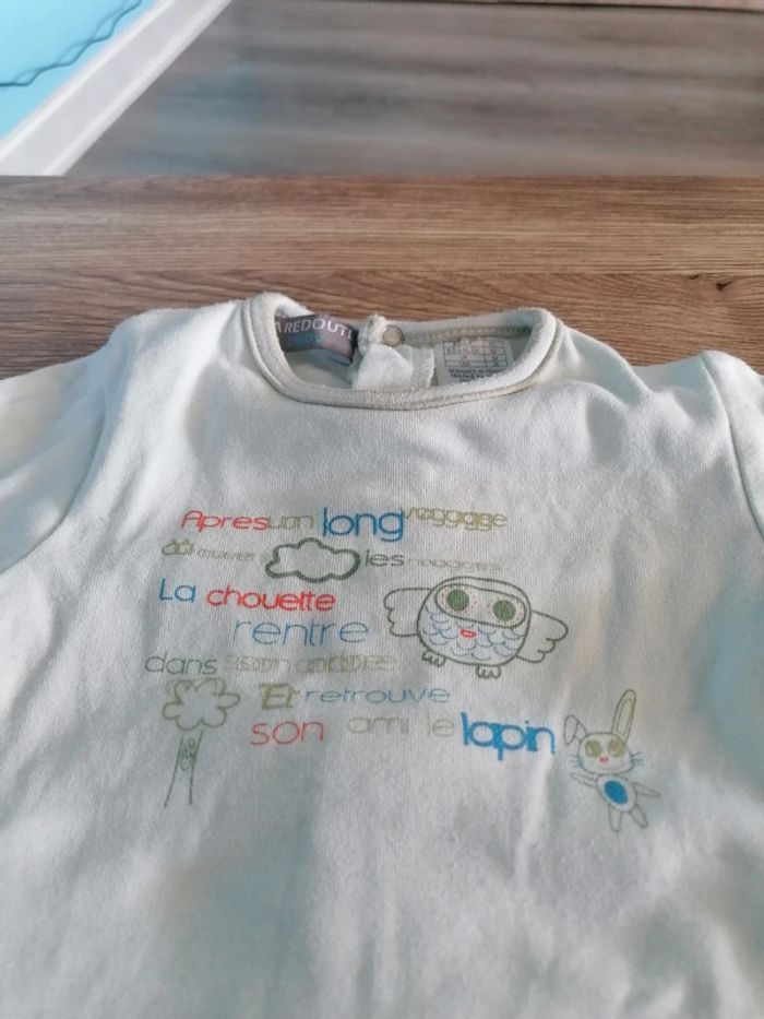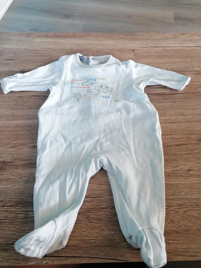 Bonjour, je vends ce pyjama blanc et beige de la marque La redoute taille 3mois en très bon état. Lavé maison non fumeur.