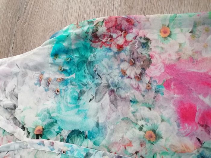 Bonjour, je vends cette chemise sans manches fleurie de la marque Pimkie taille 42 en très bon état. Lavé maison non fumeur.