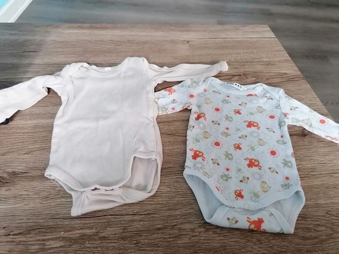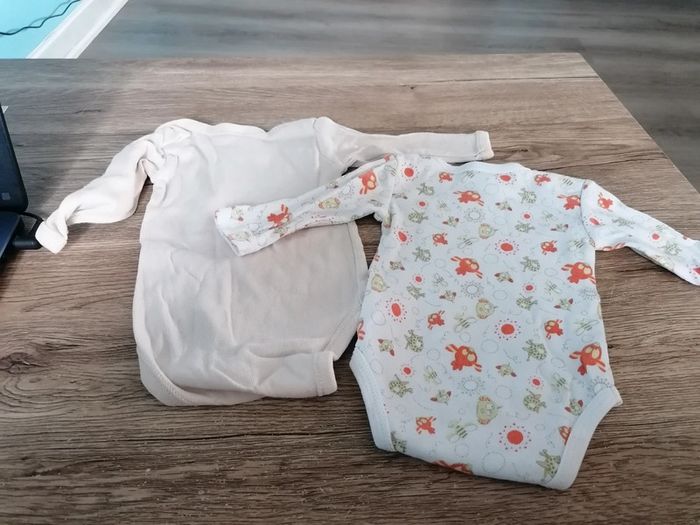 Bonjour, je vends ces 2 bodys à manches longues. Taille 3mois en très bon état. Lavé maison non fumeur.