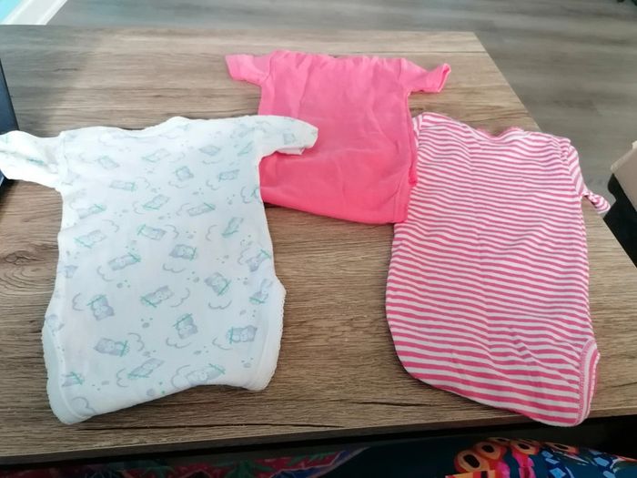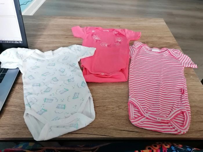 Bonjour, je vends ce lot de 3 bodys absorba taille 3mois manches courtes en très bon état. Lavé maison non fumeur.