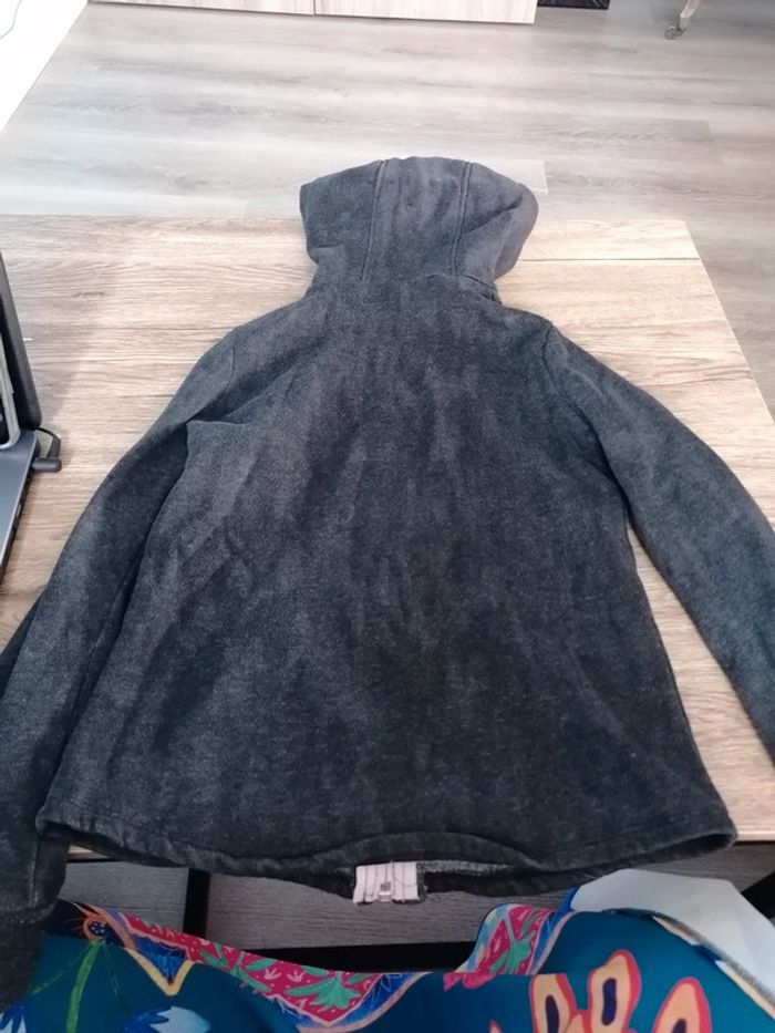 Bonjour, je vends ce gilet gris et rose pâle à capuche de la marque décathlon taille 8ans en très bon état. Lavé maison non fumeur.