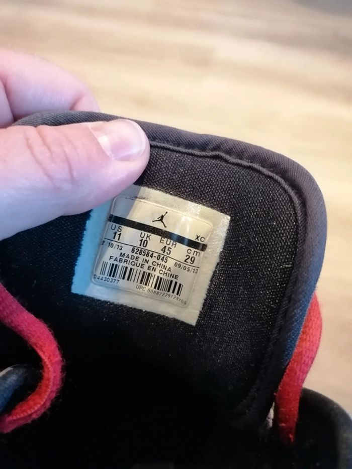 Bonjour, je vends cette paire de Jordan noire et rouge en bon état pointure 45.