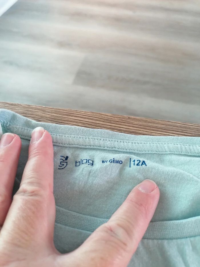 Bonjour, je vends ce tee shirt à manches courtes bleu de la marque Gémo taille 12ans en bon état. Lavé maison non fumeur.