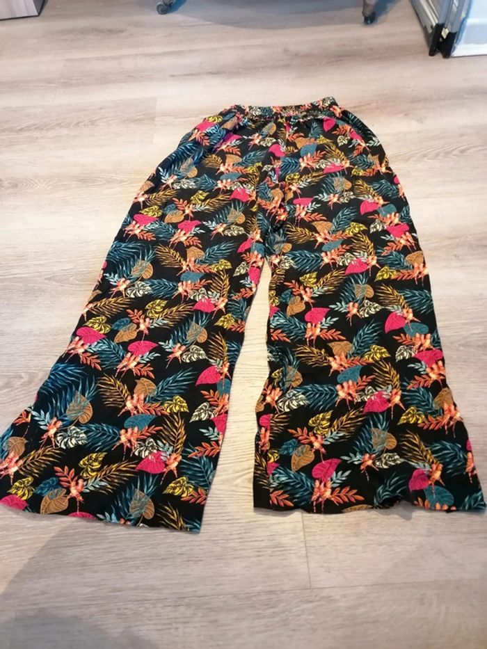 Bonjour, je vends ce pantalon à jambes larges coloré taille M ouvert un peu en bas. Très bon état. Lavé maison non fumeur.