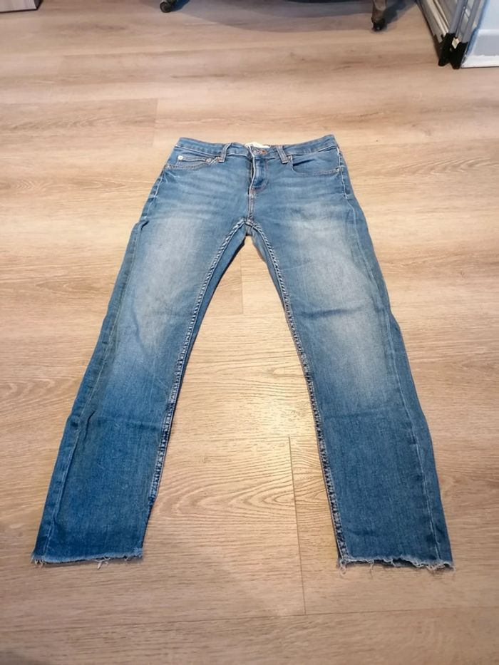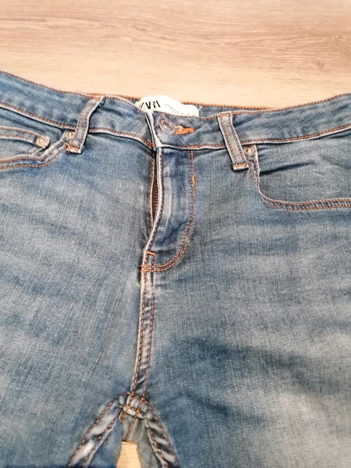 Bonjour, je vends ce jean court style 7/8e bleu de la marque Zara taille 38 en très bon état. Lavé maison non fumeur.