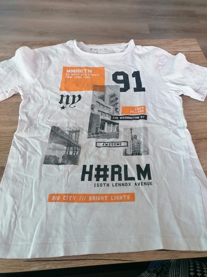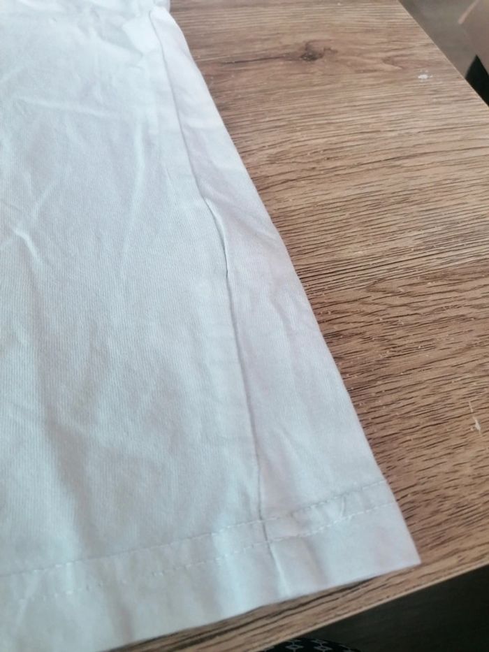 Bonjour, je vends ce tee shirt à manches courtes blanc avec motifs de la marque Gémo taille 12ans en très bon état. Lavé maison non fumeur.