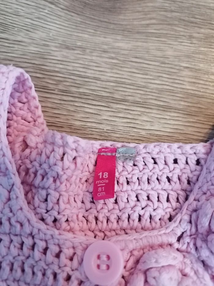 Bonjour, je vends ce gilet sans manches rose de la marque Orchestra taille 18mois en très bon état. Lavé maison non fumeur.