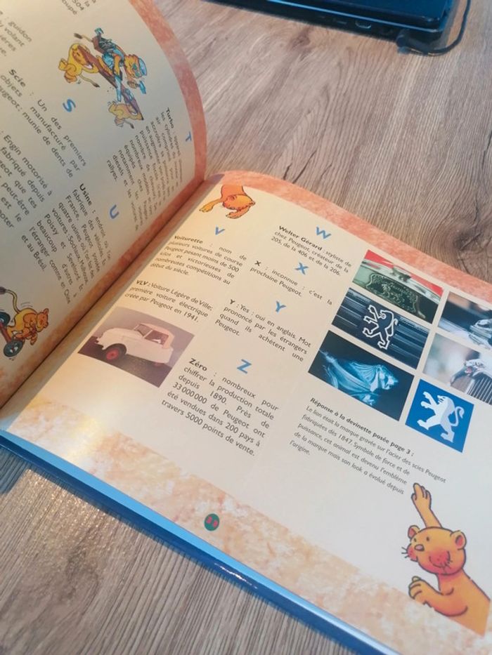 Bonjour, je vends ce livre pour enfant sur l'évolution des voitures Peugeot avec des activités. En très bon état.