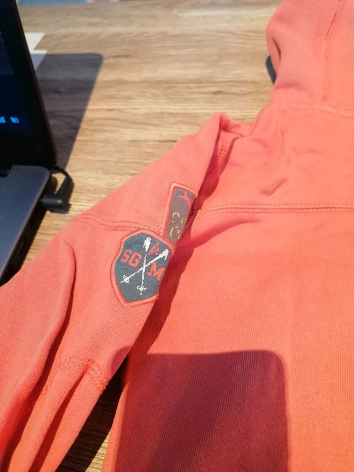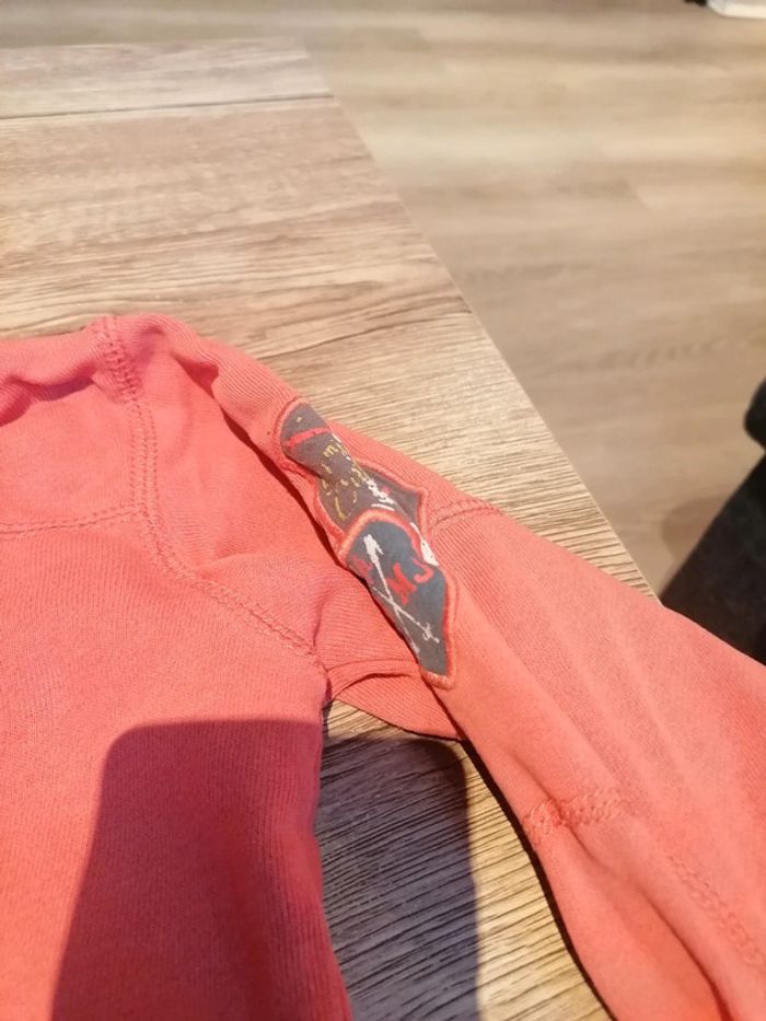 Bonjour, je vends ce gilet à capuche orange de la marque Sergent major taille 3ans en très bon état. Lavé maison non fumeur.