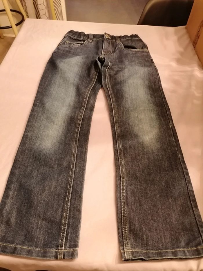 Bonjour, je vends ce jean bleu foncé de la marque Gémo taille 10ans en très bon état. Lavé maison non fumeur.