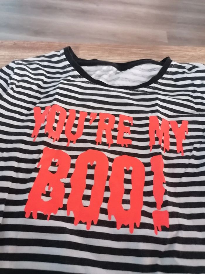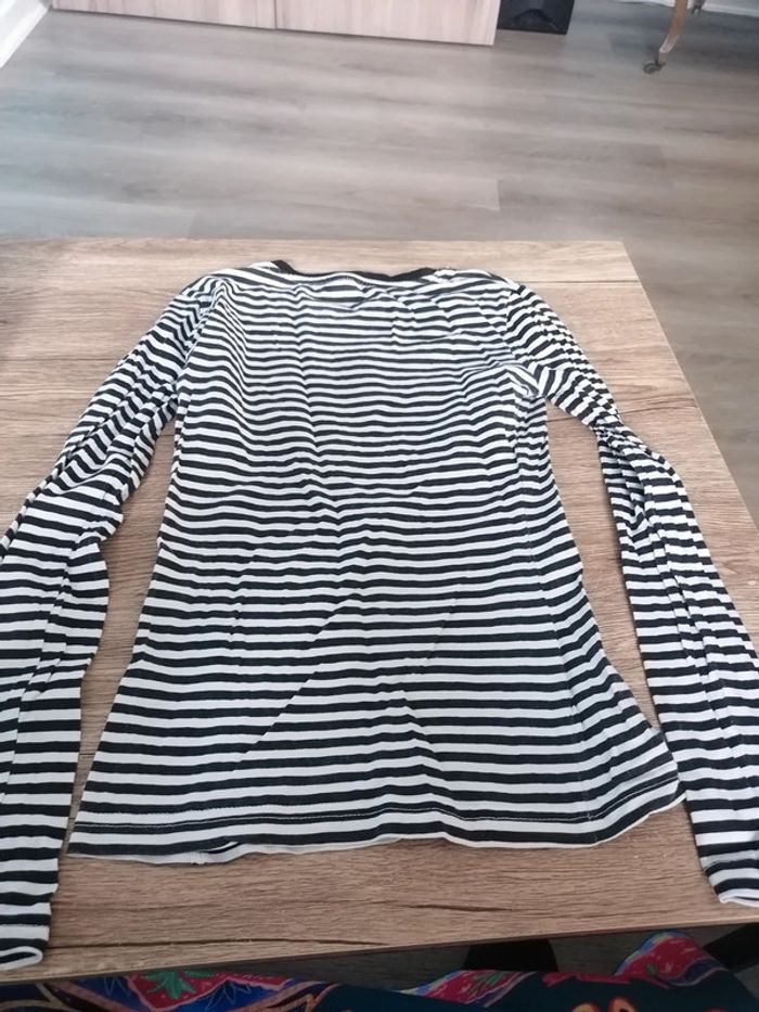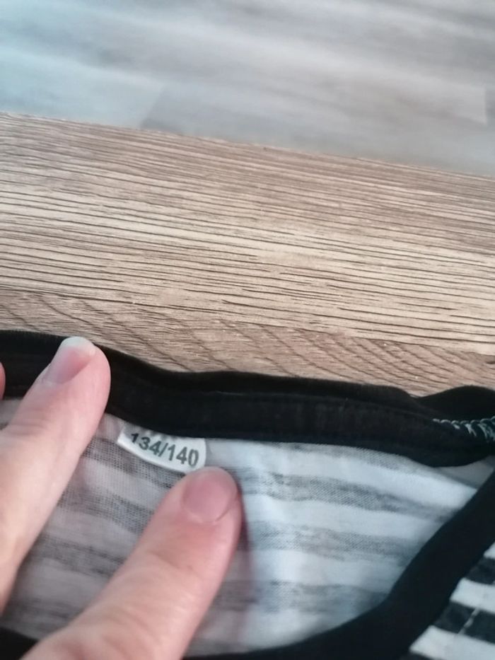 Bonjour, je vends ce tee shirt rayé de la marque Zeeman taille 9/10ans en très bon état. Lavé maison non fumeur.