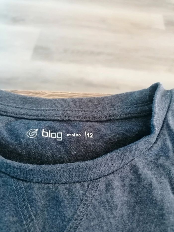 Bonjour, je vends ce tee shirt à manches courtes gris de la marque Gémo taille 12ans en très bon état. Lavé maison non fumeur.