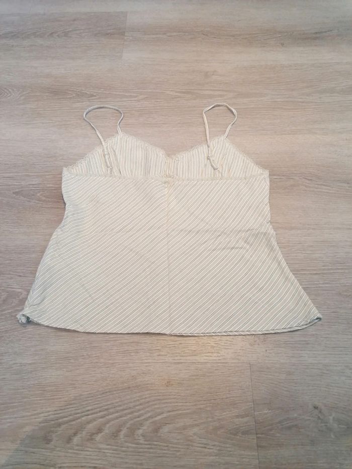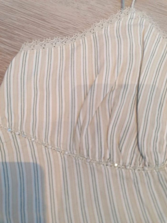 Bonjour, je vends ce débardeur à rayures vert, blanc et beige de la marque active wear taille 40 en très bon état. Lavé maison non fumeur.