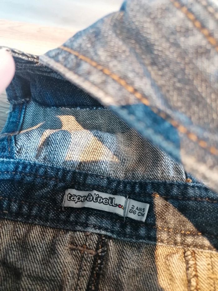 Bonjour, je vends cette salopette en jean de la marque Tape à l'œil taille 2ans en très bon état. Lavé maison non fumeur.