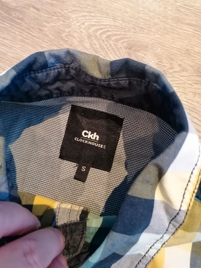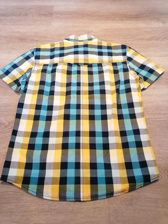 Bonjour, je vends cette chemise à manches courtes marine, jaune, turquoise et blanche de la marque C&A taille S en très bon état. Lavé maison non fumeur.