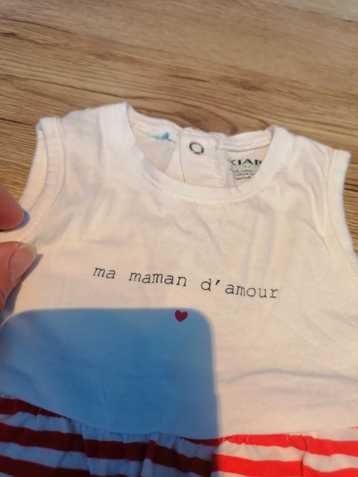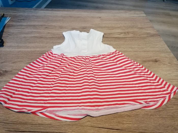 Bonjour, je vends cette robe rouge et blanche de la marque Kiabi taille 6mois en très bon état. Lavé maison non fumeur. Je vends la même en marine et blanc mon papa d'amour.