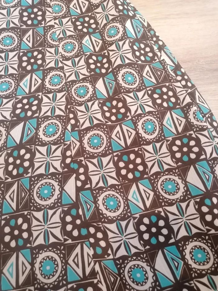 Bonjour, je vends cette robe dos nu marron bleue et crème de la marque camaïeu taille 36 en très bon état. Lavé maison non fumeur.