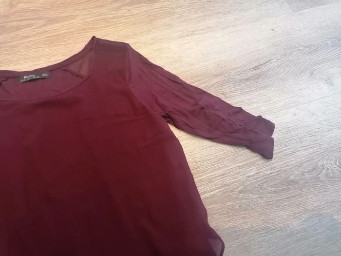 Bonjour, je vends ce tee shirt à manches 3/4 bordeaux de la marque Bershka taille L en très bon état. Lavé maison non fumeur.