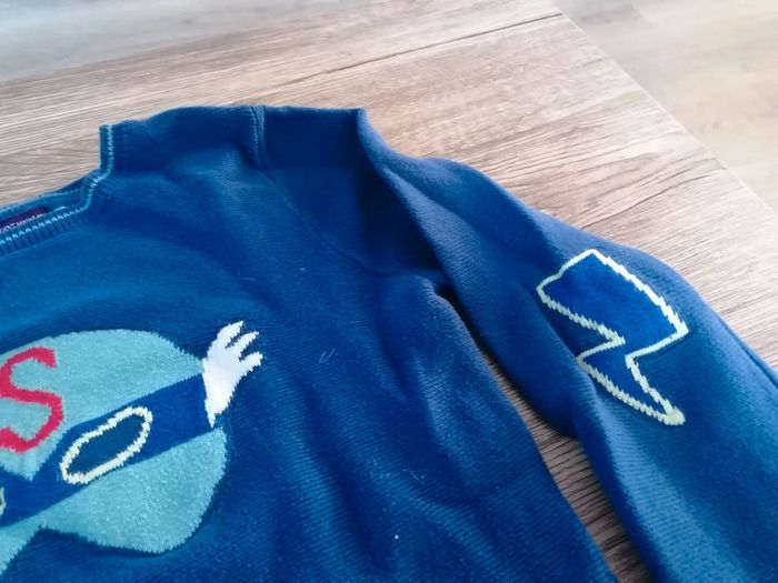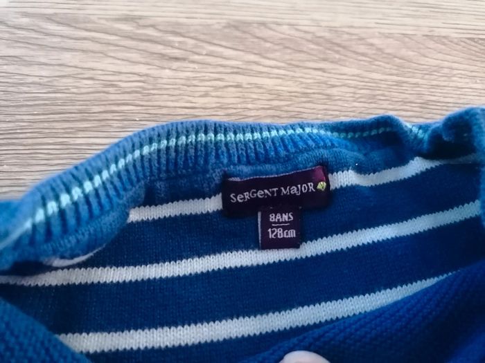 Bonjour, je vends ce pull bleu de la marque Sergent major taille 8ans en très bon état. Lavé maison non fumeur.