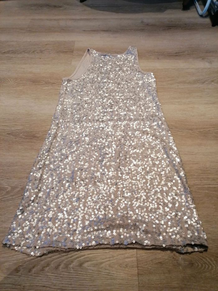 Bonjour, je vends cette robe grise à sequins de la marque soft Grey taille 34/36 en bon état (petits fils tirés). Lavé maison non fumeur.