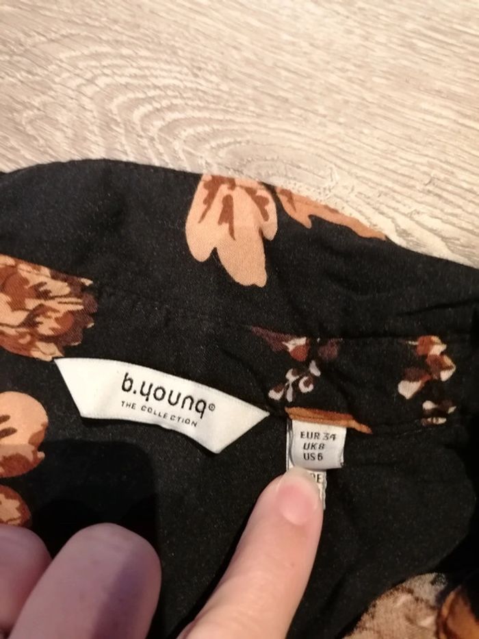 Bonjour, je vends cette chemise à manches longues noire avec fleurs marrons de la marque B.Young taille 34 en très bon état. Lavé maison non fumeur.