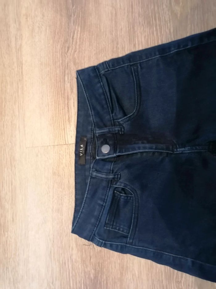 Bonjour, je vends ce pantalon taille basse bleu marine de la marque Vila taille S en très bon état. Lavé maison non fumeur.