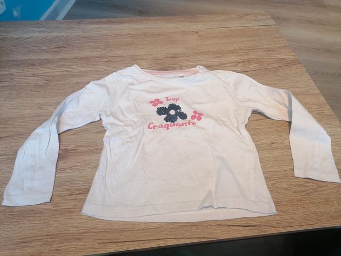 Bonjour, je vends ce tee shirt à manches longues blanc avec motifs de la marque Basic FPC taille 4ans en bon état. Lavé maison non fumeur.