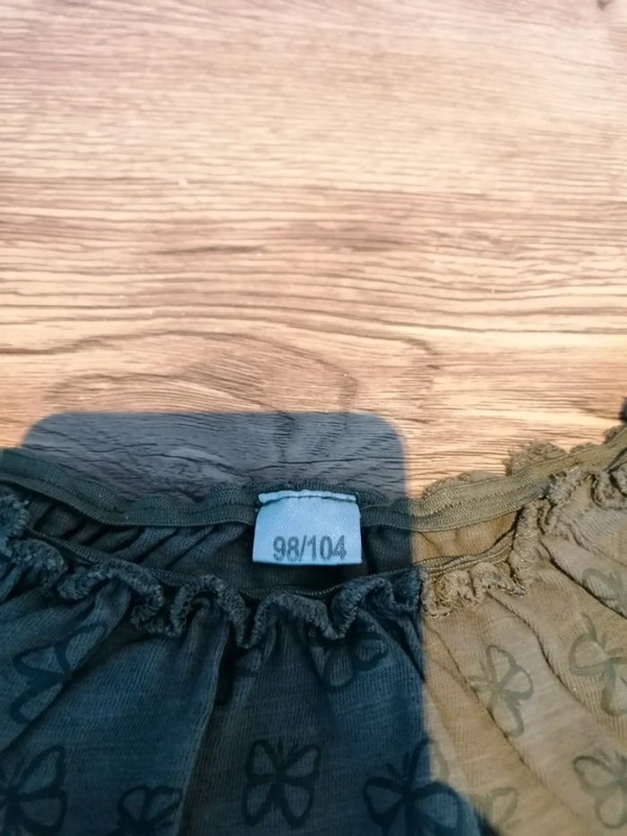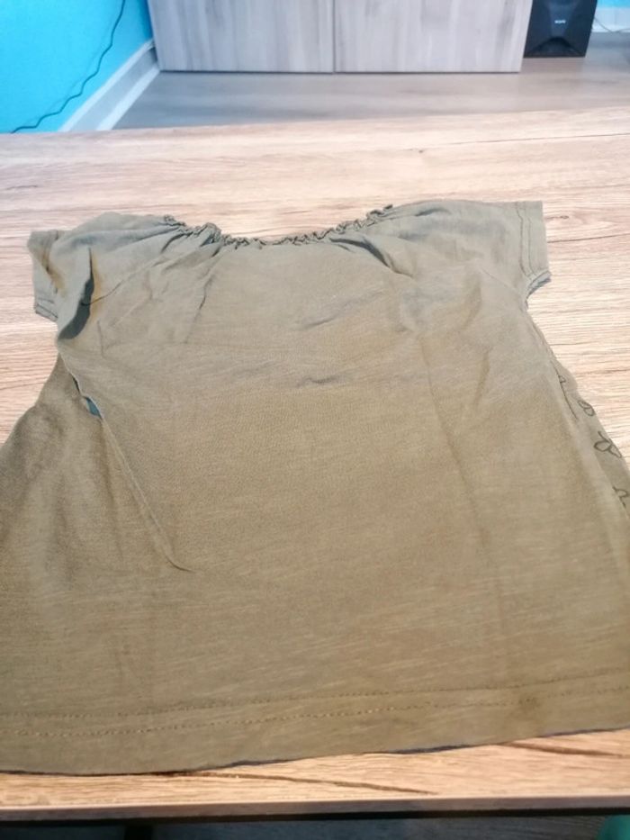Bonjour, je vends ce tee shirt à manches courtes kaki motifs papillons de la marque Zeeman taille 98/104cms en très bon état. Lavé maison non fumeur.