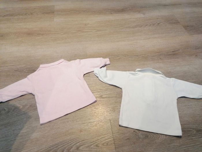 Bonjour, je vends ce lot de 2 polos rose et blanc taille mois en bon état. Lavé maison non fumeur.