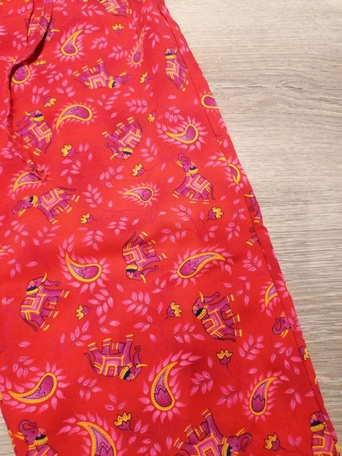 Bonjour, je vends je pantalon rouge avec motifs éléphants taille 10ans taille élastique en très bon état. Lavé maison non fumeur.