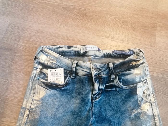 Bonjour, je vends ce jean bleu super skinny taille 38 de la marque Bershka neuf avec étiquette.