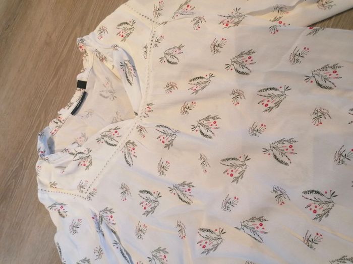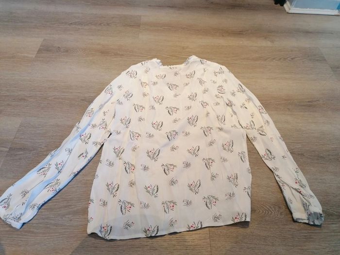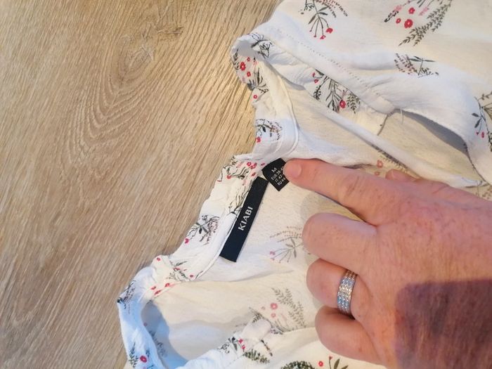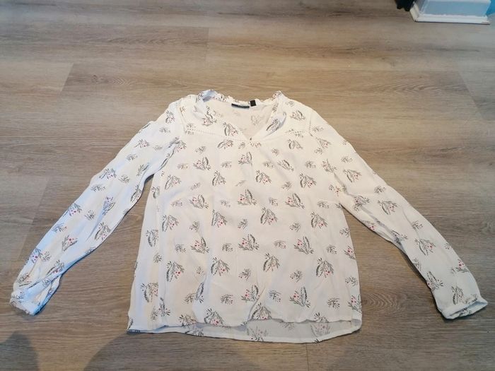 Bonjour, je vends ce tee shirt à manches longues blanc fleuri de la marque Kiabi taille M en très bon état. Lavé maison non fumeur.