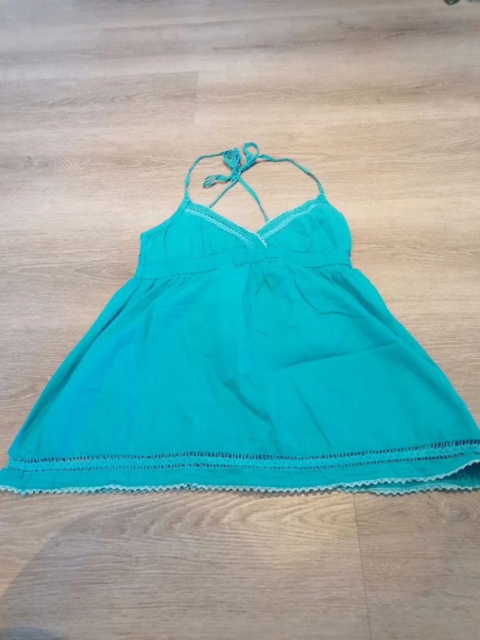 Bonjour, je vends ce débardeur bleu de la marque Spot taille 38 en très bon état. Lavé maison non fumeur.