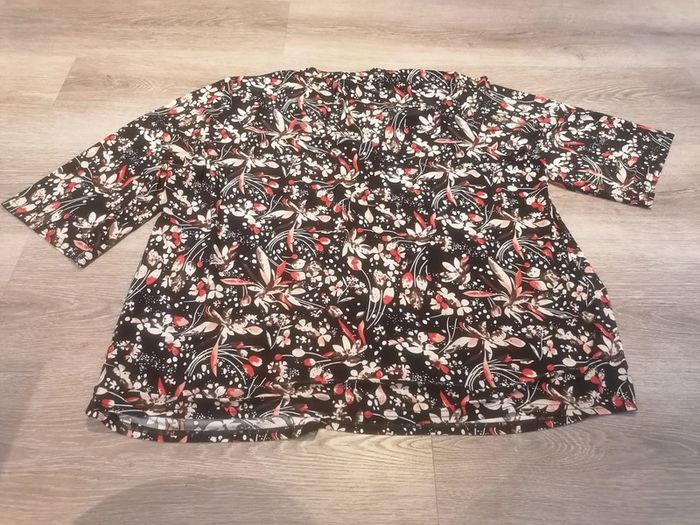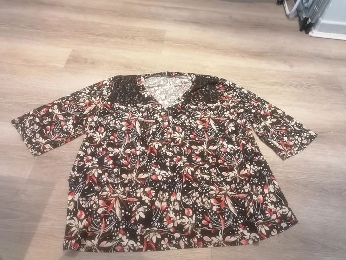 Bonjour, je vends ce tee shirt à manches courtes (au dessus du coude) fleuri de la marque Kiabi taille 54-56 en très bon état. Lavé maison non fumeur.