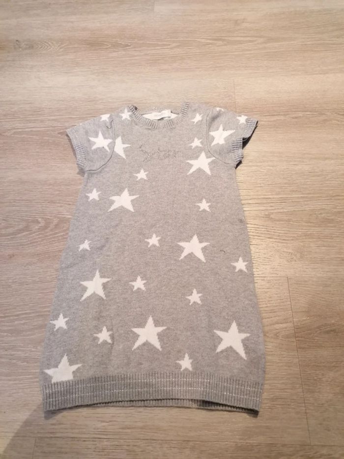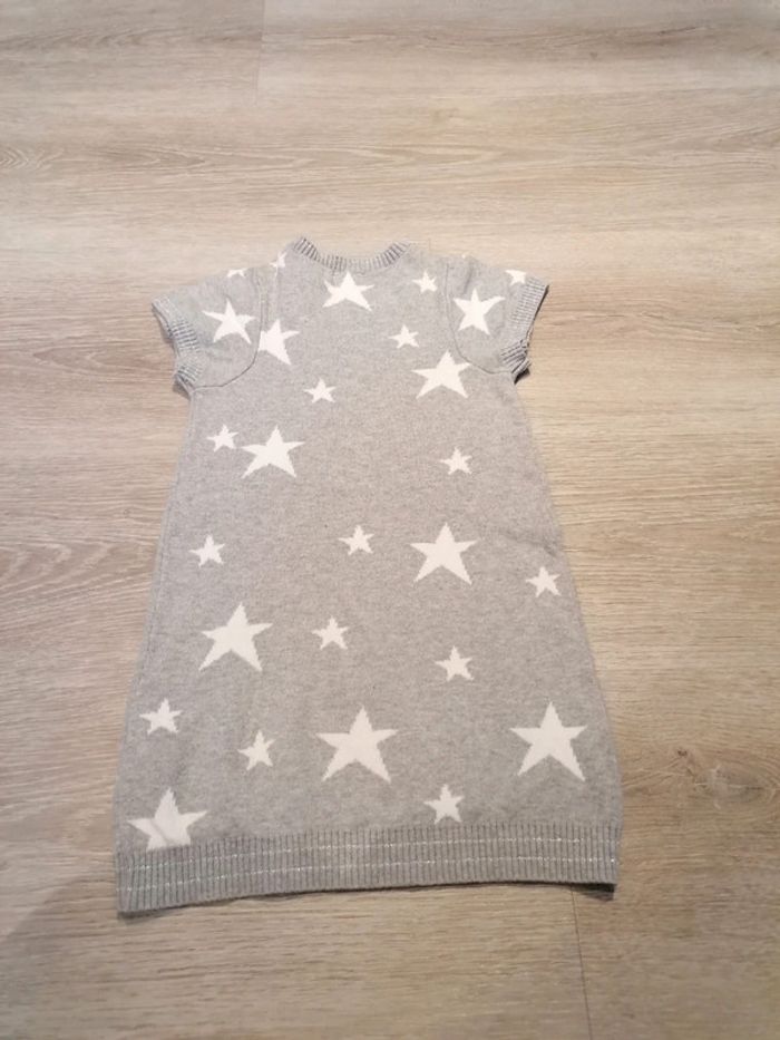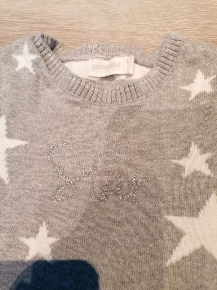 Bonjour, je vends cette robe pull grise motif étoiles blanches Orchestra taille 4ans en très bon état. Lavé maison non fumeur.