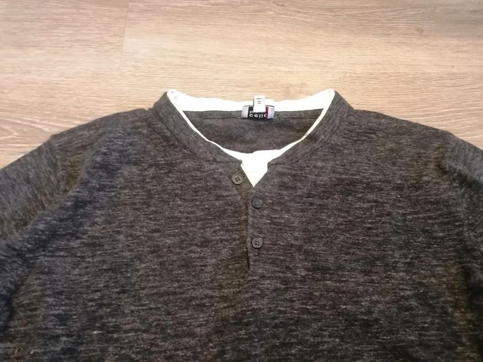 Bonjour, je vends ce tee shirt à manches longues un peu épais gris et blanc de la marque Célio taille L en très bon état. Lavé maison non fumeur.