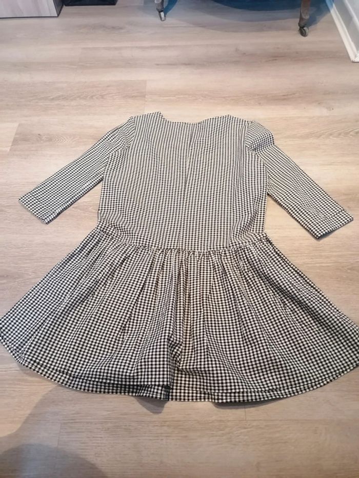 Bonjour, je vends cette robe manches 3/4 à carreaux noirs et blancs de la marque Bizzbee taille M en très bon état. Lavé maison non fumeur.