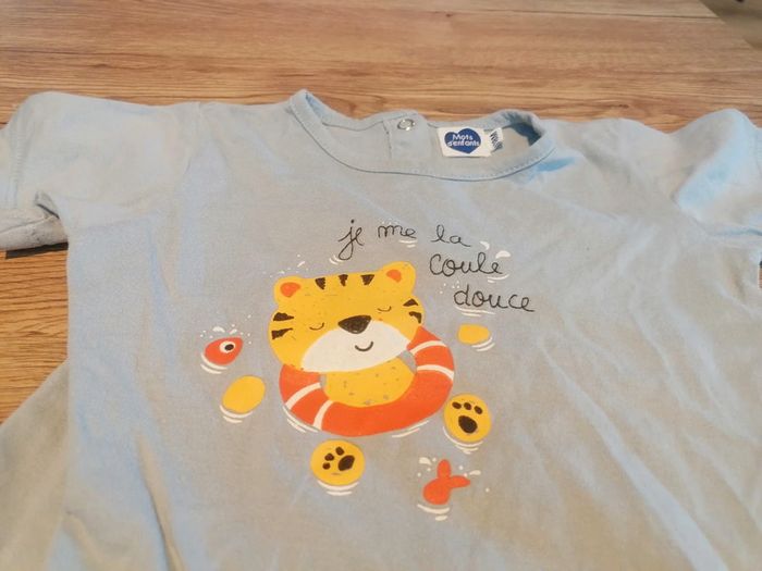 Bonjour, je vends ce tee shirt à manches courtes bleu clair de la marque mots d'enfants taille 18mois en très bon état. Lavé maison non fumeur.