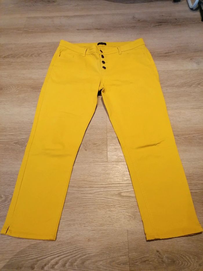 Bonjour, je vends ce pantalon jaune de la marque Kiabi taille 42 en très bon état. Lavé maison non fumeur.