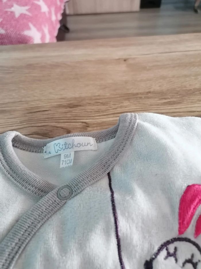Bonjour, je vends ce pyjama 1 pièce en bon état de la marque Kitchoun taille 9mois. Lavé maison non fumeur.