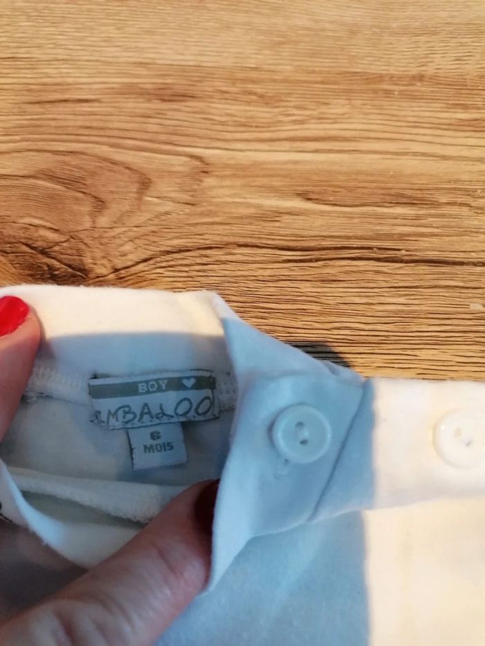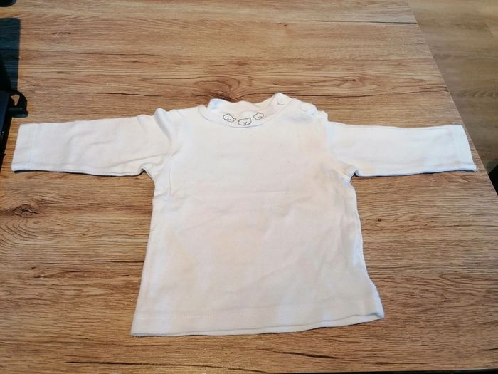 Bonjour, je vends ce tee shirt à manches longues blanc de la marque Kimbaloo taille 6mois en très bon état. Lavé maison non fumeur.