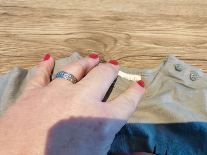 Bonjour, je vends ce tee shirt à manches longues beige de la marque Kiabi taille 6mois en très bon état. Lavé maison non fumeur.