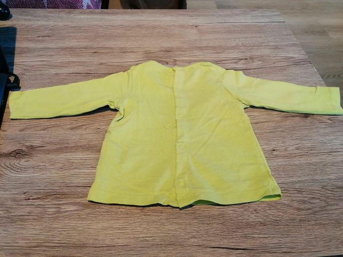Bonjour, je vends ce tee shirt à manches longues vert anis taille 6mois de la marque Orchestra en très bon état. Lavé maison non fumeur.