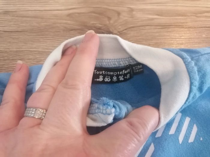 Bonjour, je vends ce gilet bleu clair, gris et blanc de la marque tout compte fait taille 12mois en très bon état. Lavé maison non fumeur.